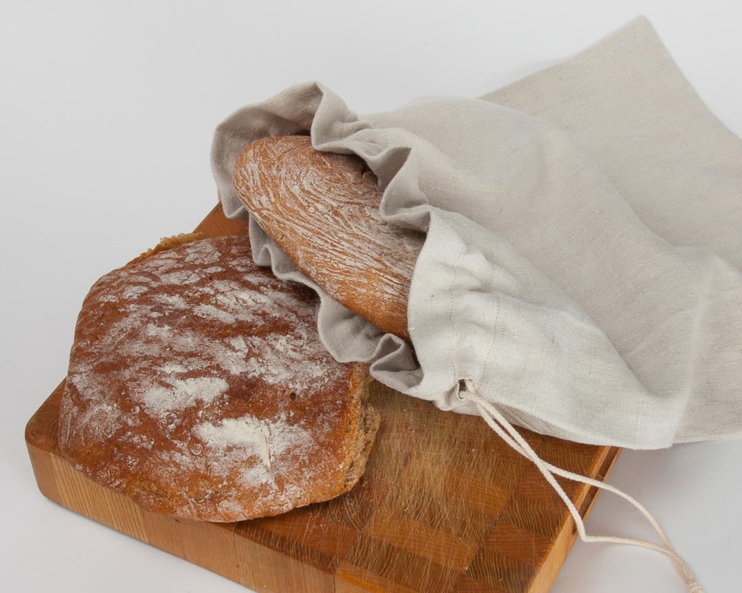 Lange habe ich nach einer idealen Aufbewahrung für meine selbstgebackenen Brote gesucht. Ich habe Tontöpfe, Birkenholzschachteln und blecherne Brotkästen ausprobiert. Immer fingen einzelne Brotkrümel oder auch das ganze Brot nach einigen Tagen an zu schimmeln, da in diesen Gefäßen die Luftzufuhr sehr eingeschränkt ist. Erst ein Brotsack aus Leinen hielt mein Brot frisch und schimmelfrei auch über mehrere Tage.