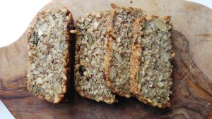 Um es auf die Spitze zu treiben habe ich dann noch ein Brot ohne Mehl dazu gebacken……….